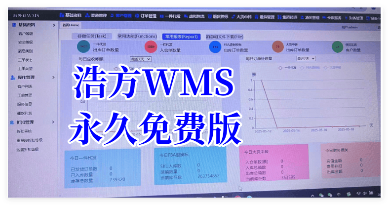浩方WMS海外仓系统,支持任意需求的定制开发,有永久免费版可以使用,支持一件代发,FBA退换标,大货中转,快递打单,财务管理等功能,无任何费用!
